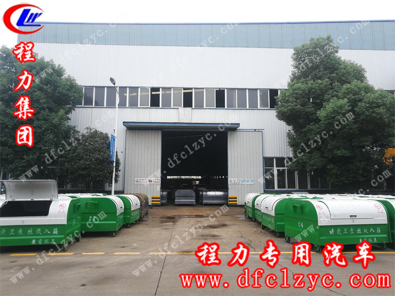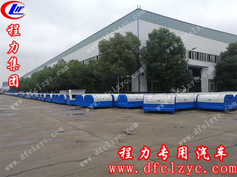 上圖為程力集圖垃圾箱成品停放區(qū),客戶成批定制的垃圾箱整齊劃一的排列在廠區(qū)門口